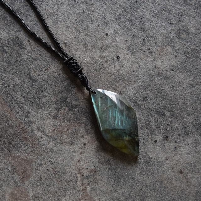 ラブラドライト フリーカットTOP ネックレス 【 長さ変えられる 紐製チェーン仕様 】