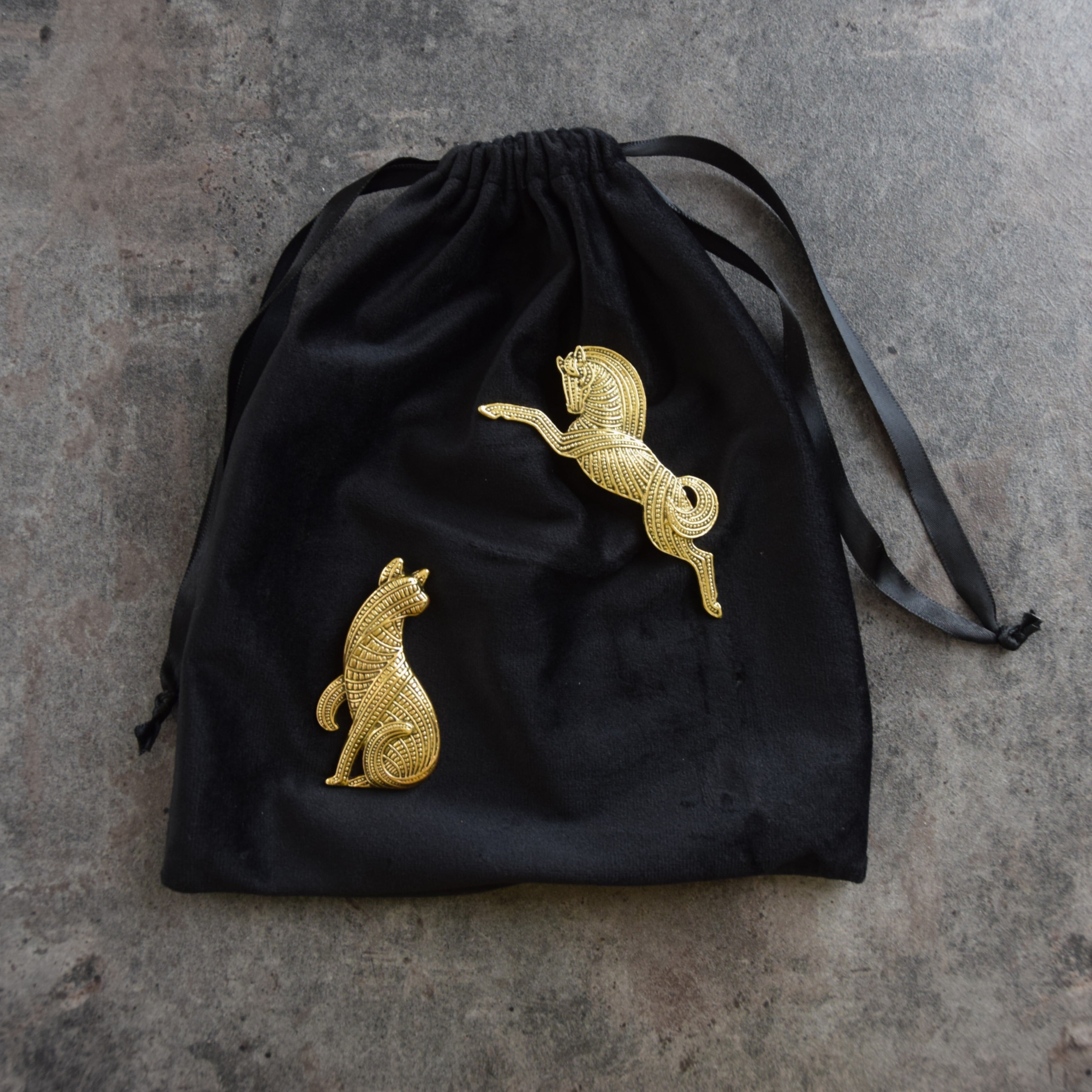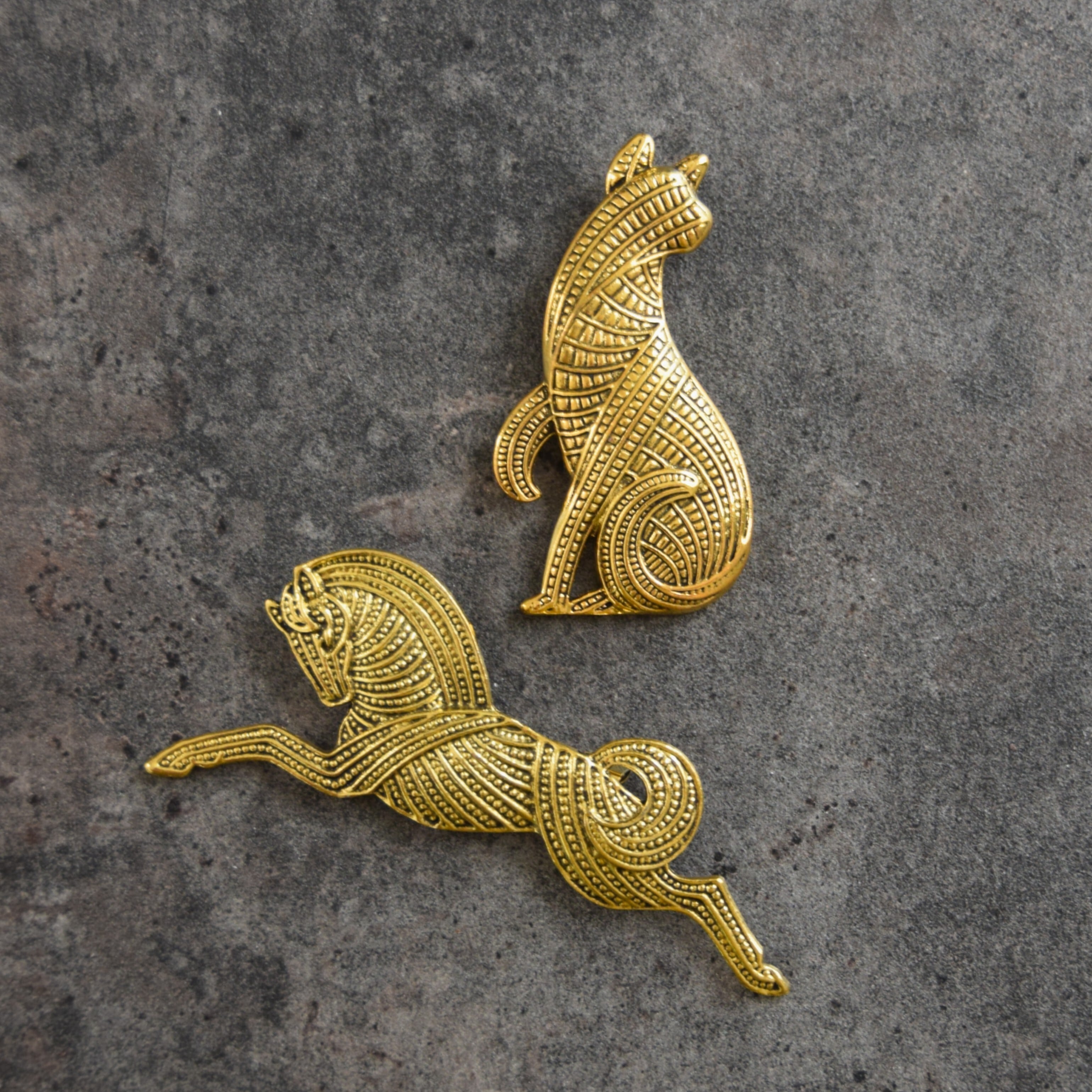 2026 午年 開運アイテムに。黄金色 立体 ピンバッジ ✵ 馬ver. 猫ver.