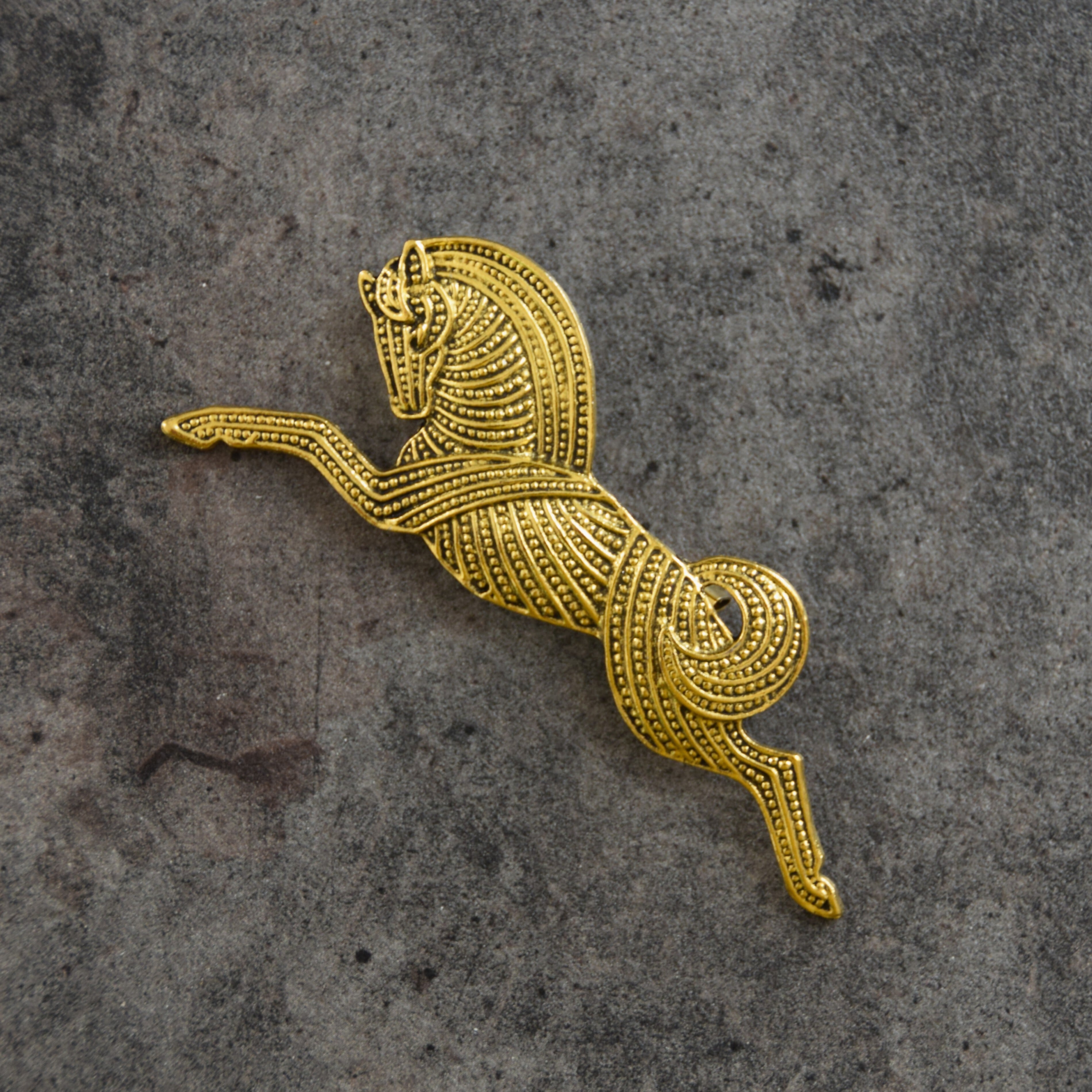 馬モチーフのアイテム×金運を呼び寄せるカラーとして知られている黄金色の掛け合わせのピンバッジ、幸運を呼び寄せるデイリーアイテムとして大変お勧めです。